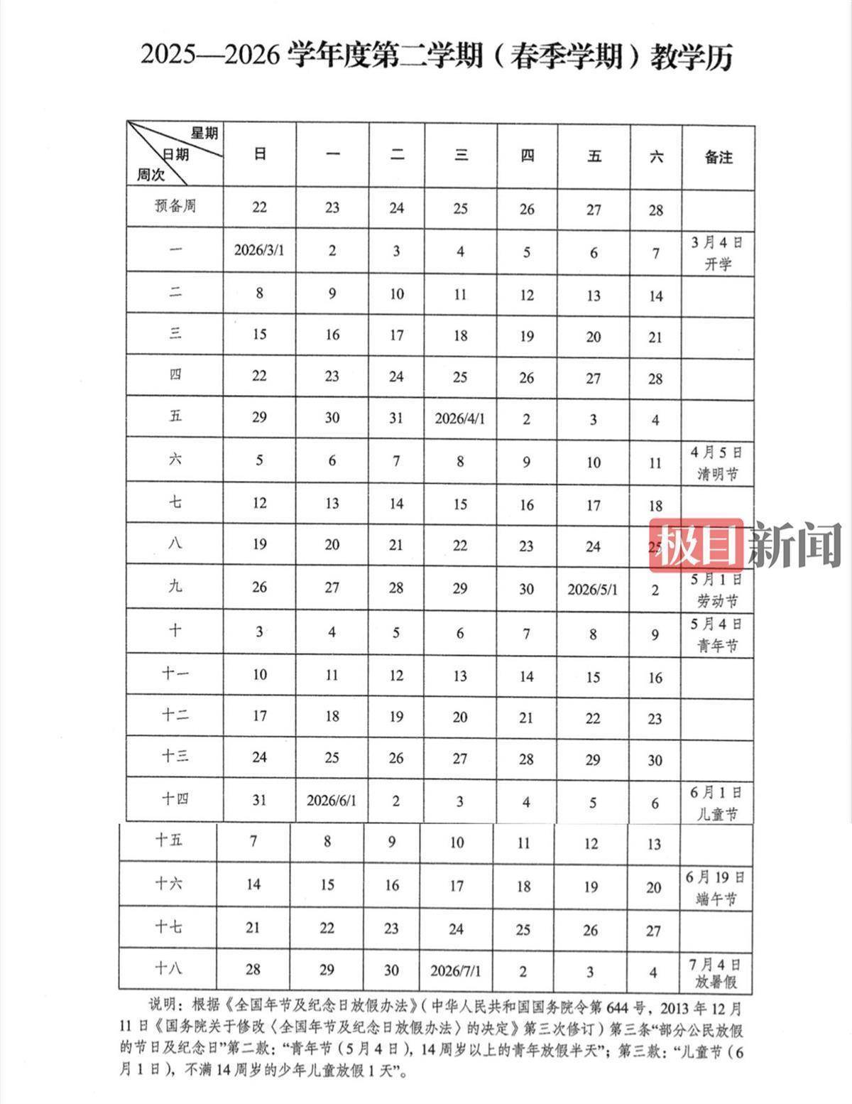 校历同时明确了2026年春季学期(第二学期)后续关键节点。除统一开学时间外,下学期期末考试及六年级毕业考试安排已同步公布。